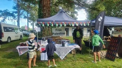 Palestine stall at Waitangi - fantastic response from tens of thousands who streamed past the stall going to and from the anniversary day event. Only one single grumpy man muttering about the bible was in support of the genocidal apartheid state of Israel.