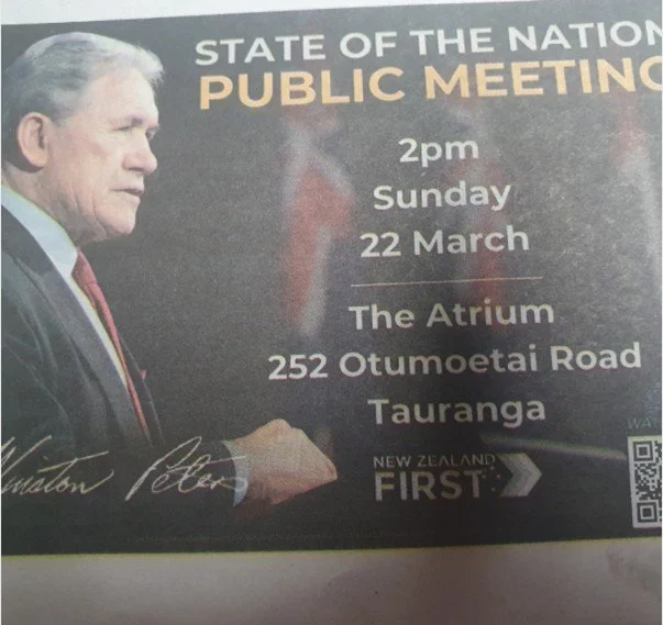 Winston Peters, chief apologist for Israeli genocide, in Tauranga